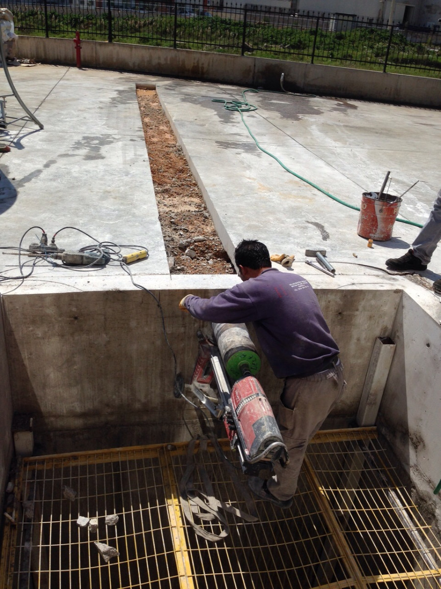 Karot ile beton duvar delme işlemi gerçekleştirilmiştir. Gider kanalının havuza açılan duvarında işlem yapılmıştır.